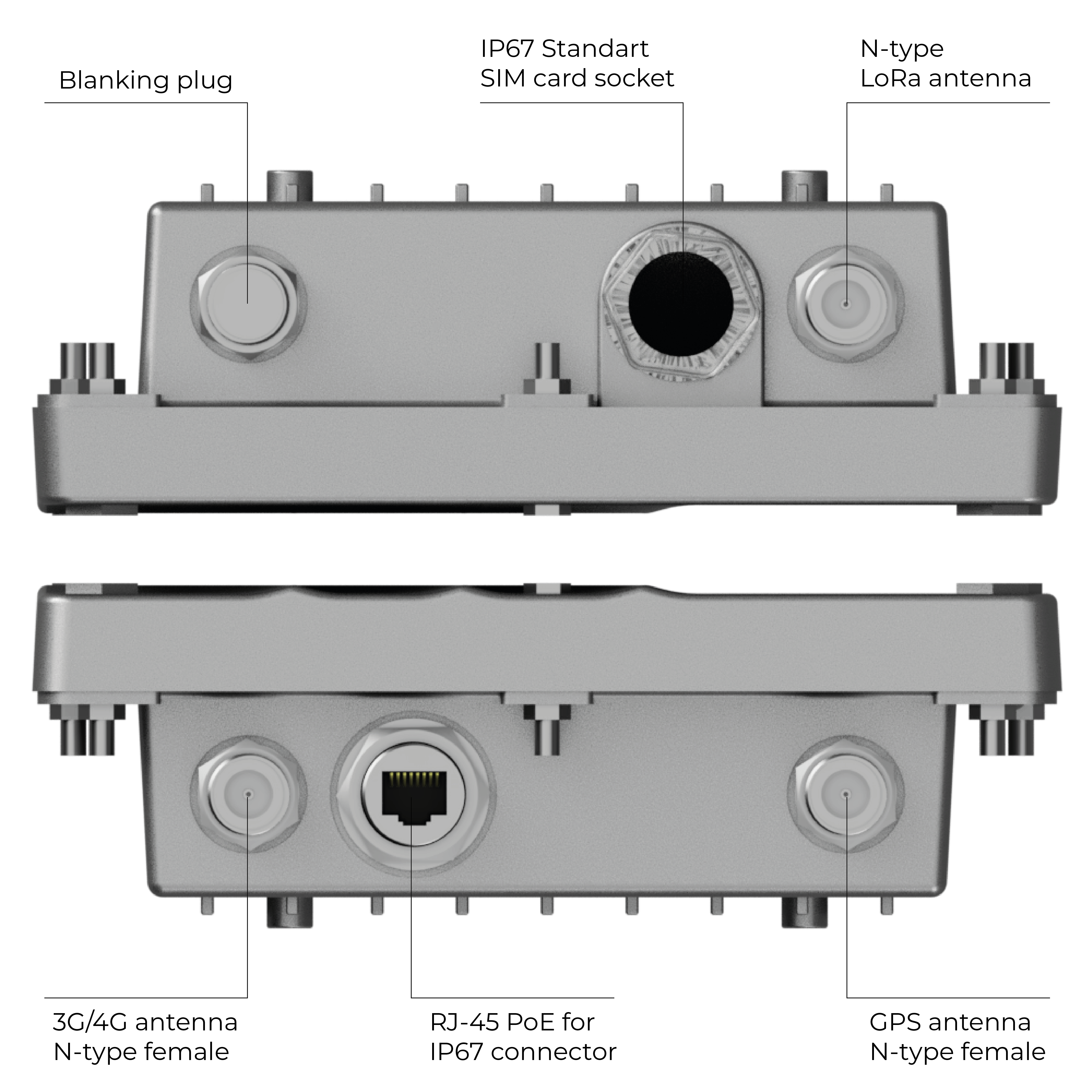 Outdoor Micro Gateway has a compact size of only: 230 x 200 x 60 mm, external LoRa, gps, 3g / 4g antennas are also connected to it.